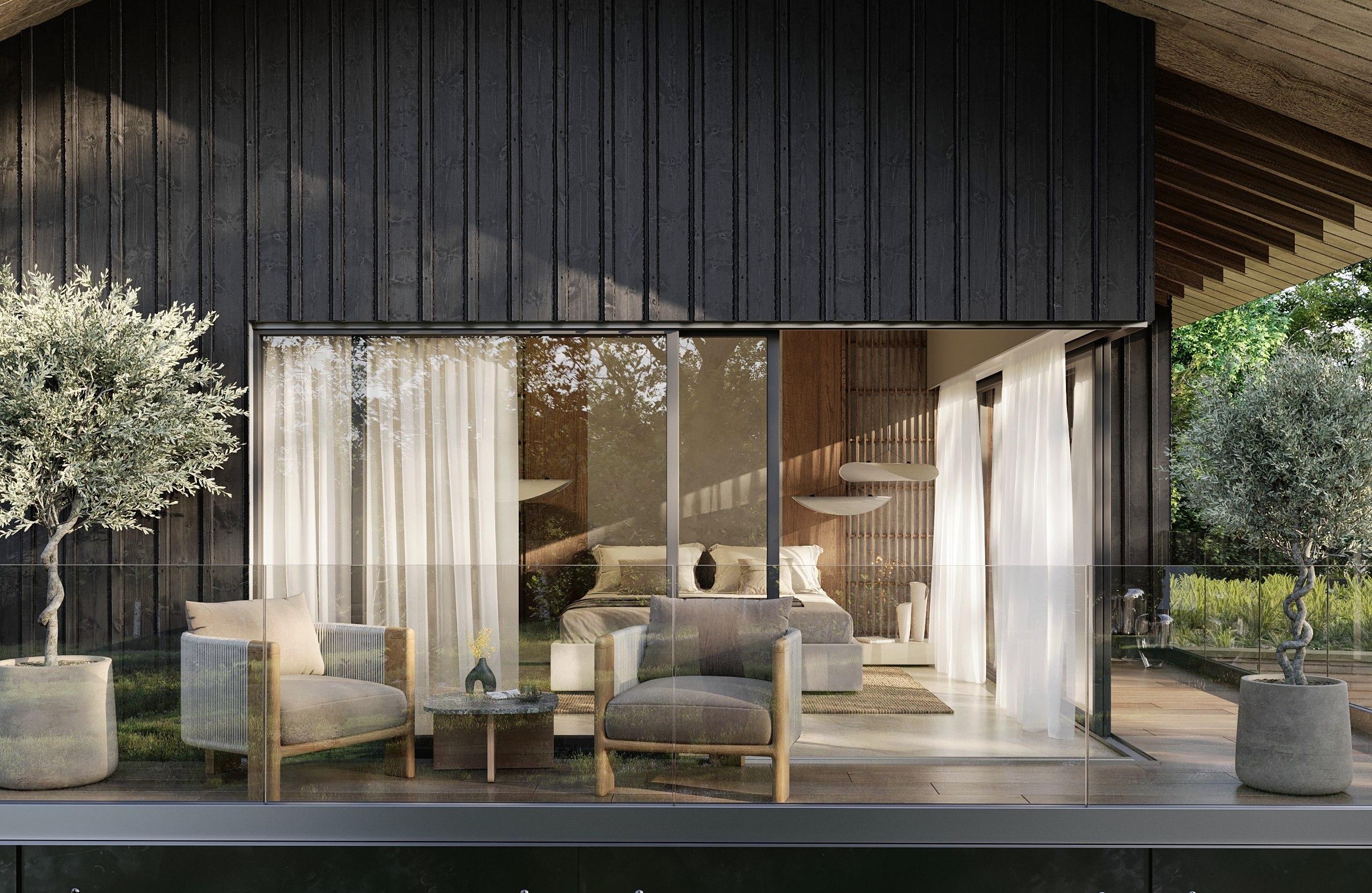 Despite it being a new build, the annexe reflects the main property in its architectural language and detailing, creating visual harmony while offering full independence. With its own living, kitchen and sleeping areas, it allows older generations to live comfortably nearby, maintaining daily connection without dependence.