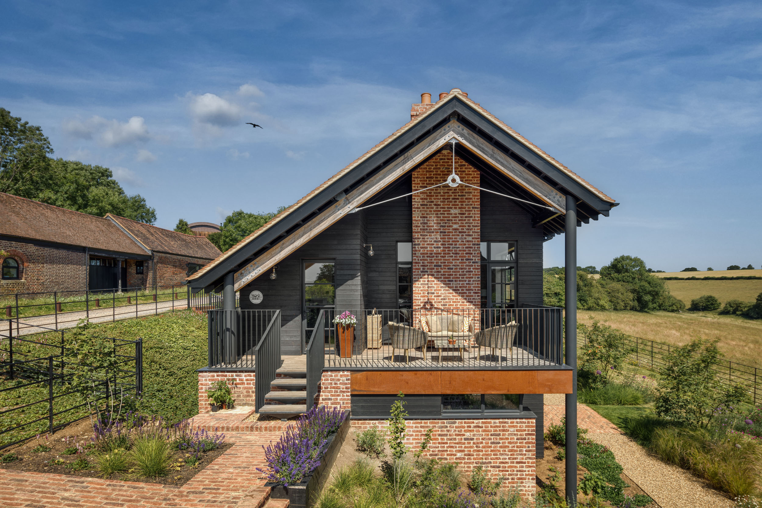 Perched on a steeply sloping site overlooking Frithesden Valley, this characterful replacement build forges a striking identity as a unique country home.
