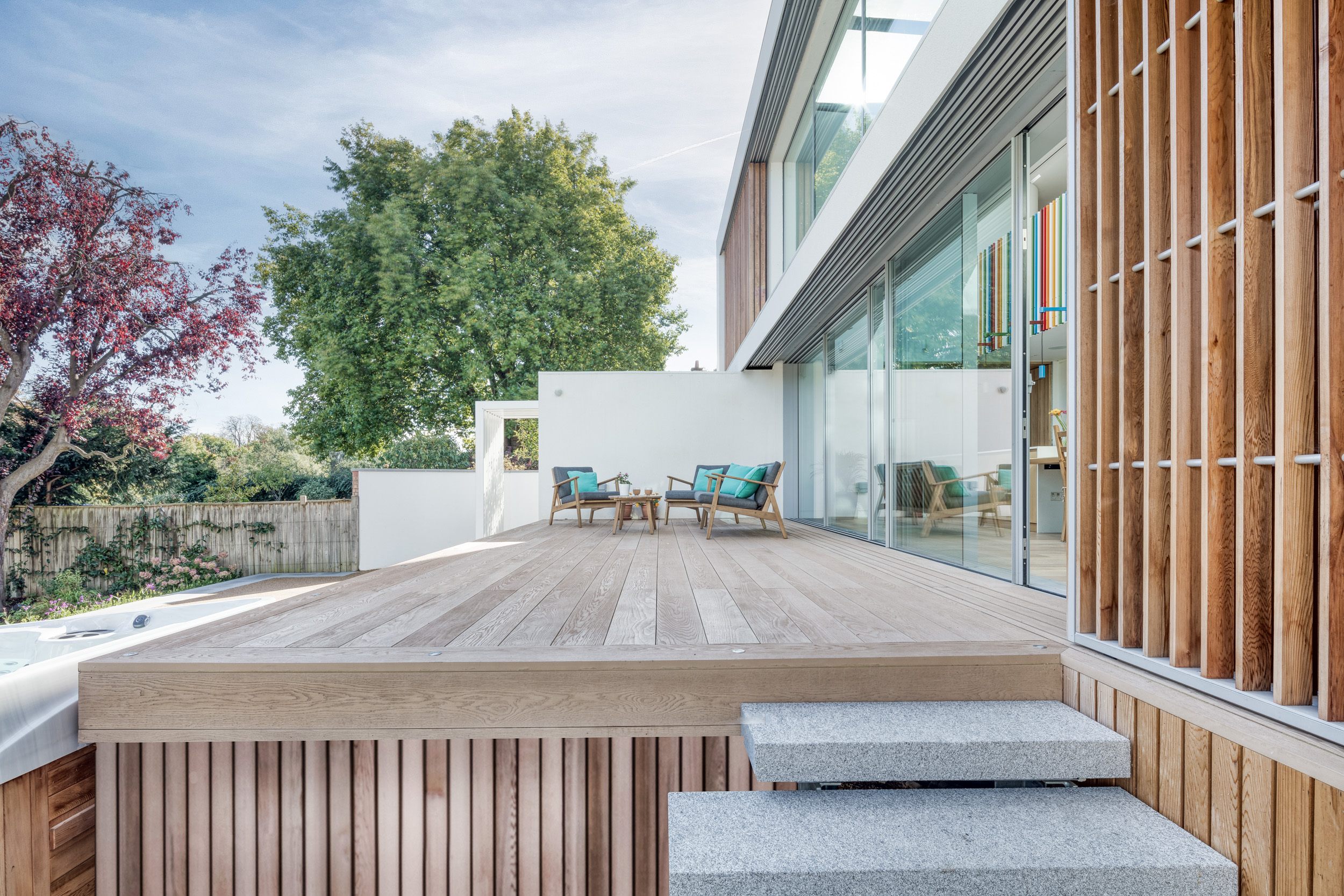A key area of engineering for the project was the design of elegant timber mechanical shutters that would provide solar shading and prevent overheating during the hotter months, but which could also be fully folded back when desired, ensuring a holistic indoor-outdoor living experience all year round.