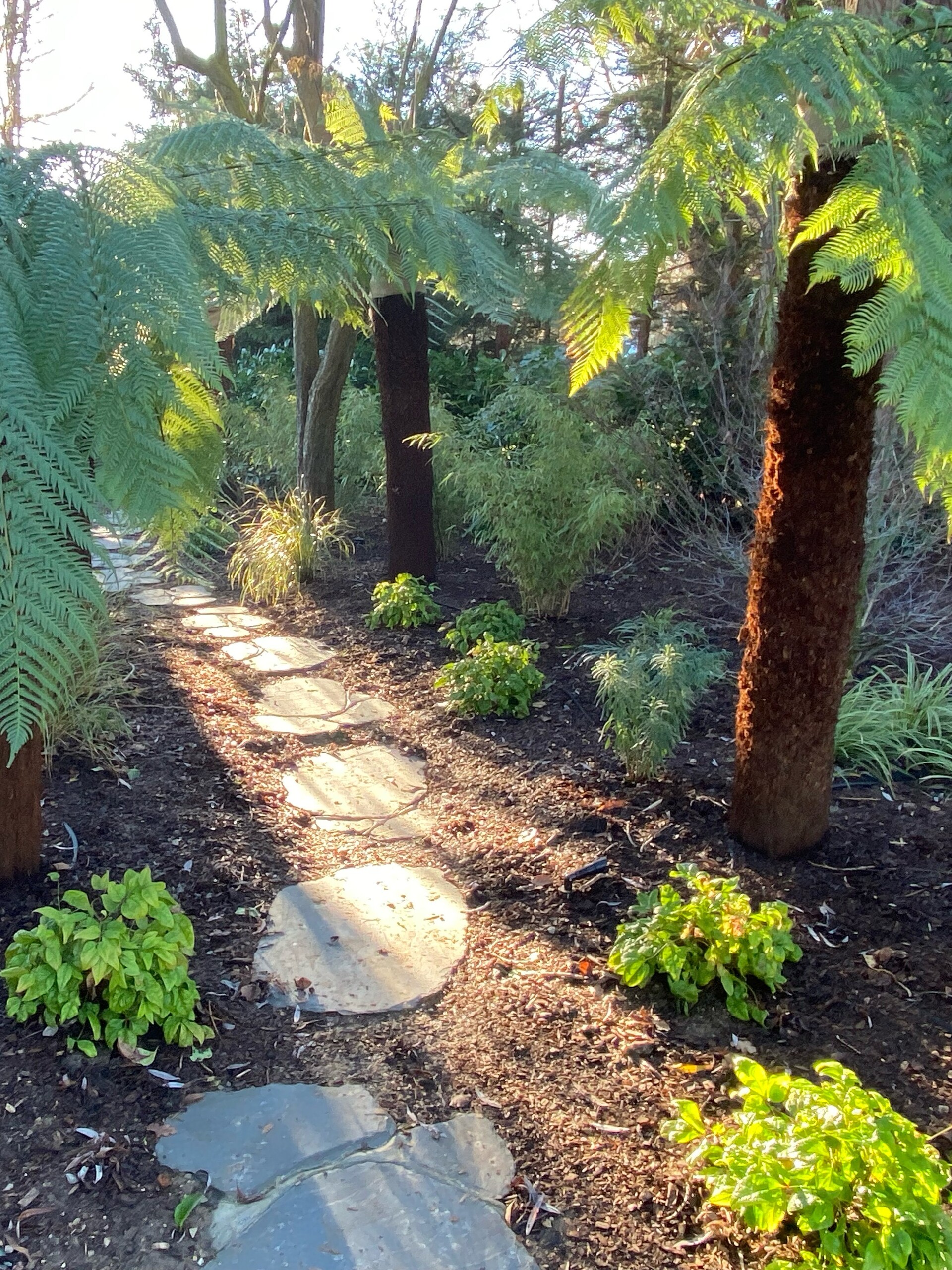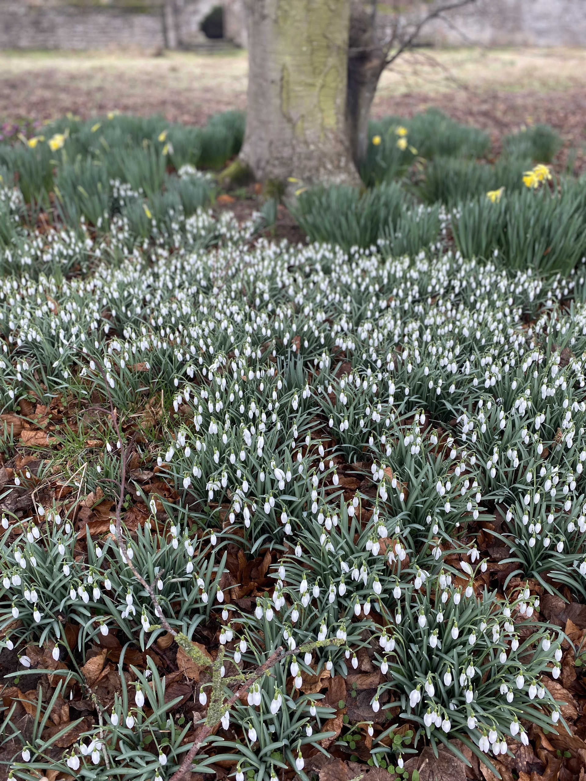 Ground-level planting maintains continuity through the seasons. Evergreen ferns, Heuchera and hellebores provide texture and tone, while early bulbs — snowdrops, crocus and winter aconite — punctuate the landscape with life as spring approaches. Layering planting in this way ensures the garden never feels static, even in the colder months.