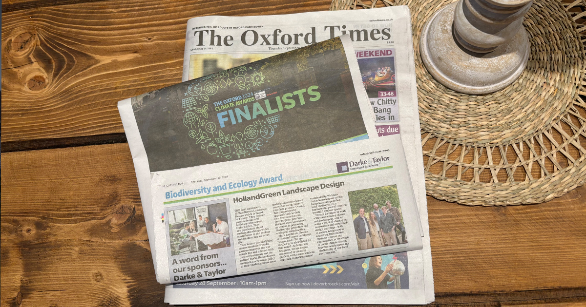 The HollandGreen Landscapes Team is one of 3 shortlisted in the Biodiversity and Ecology Award, Oxford Climate Awards 2024, and has been featured in The Oxford Times.