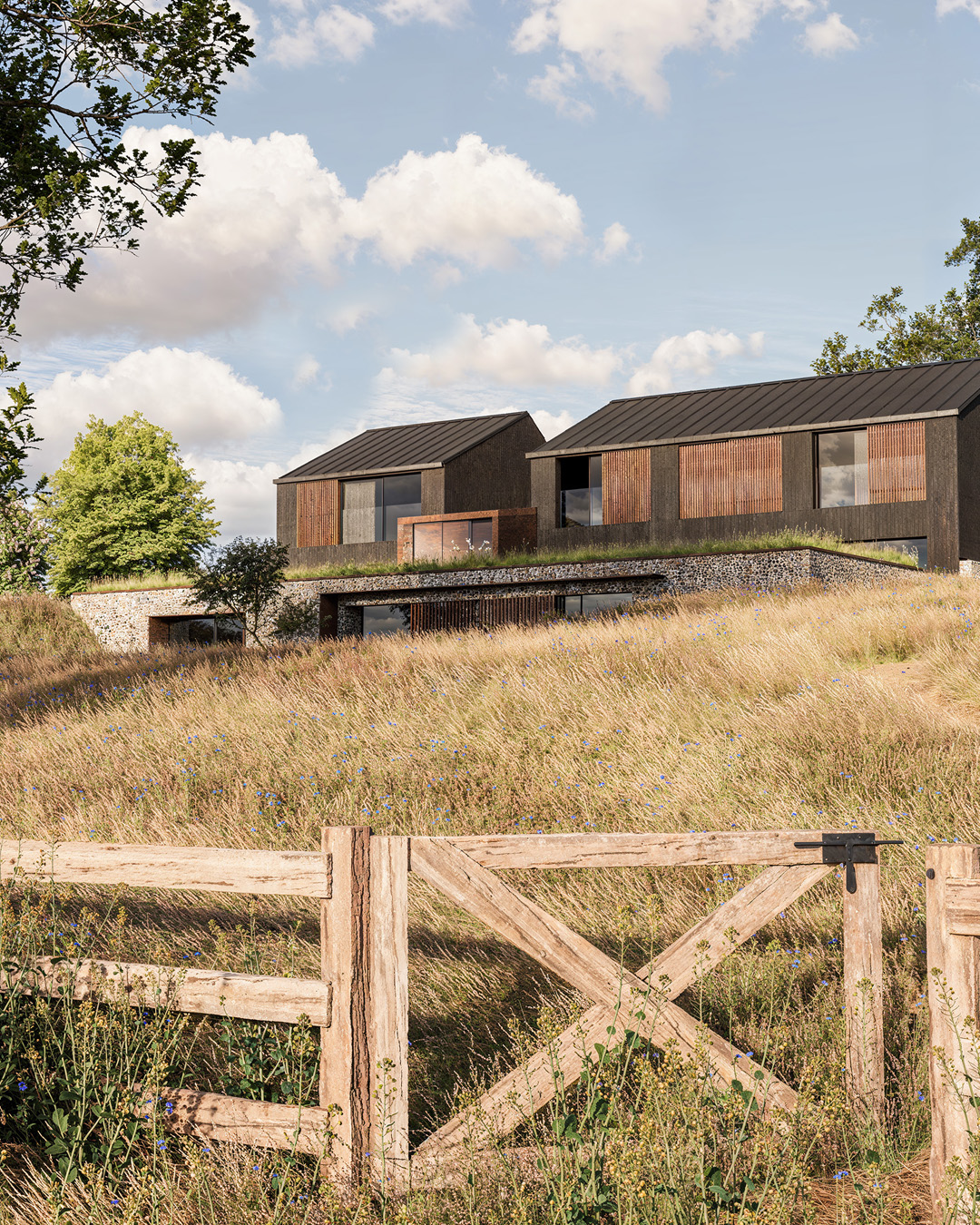 Bracken Fold is a thoughtfully designed new-build family home located in the heart of the Oxfordshire countryside. Conceived as a contemporary retreat, the house responds directly to its rural setting through a carefully considered architectural language that balances bold, modern forms with a material palette rooted in the landscape. The design is tailored to family life, with a strong emphasis on sustainability, connection to nature, and long-reaching views.