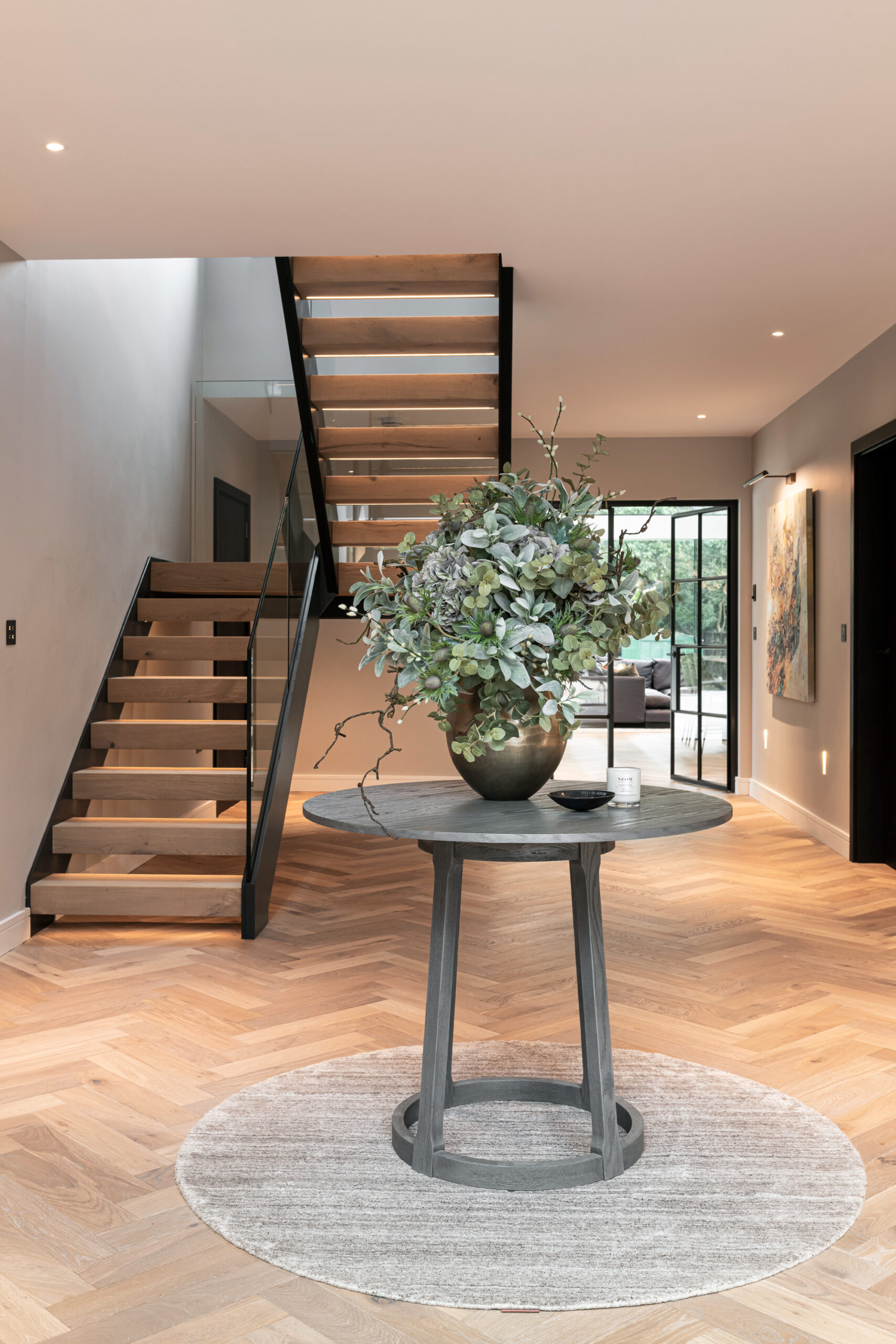 Our clients commissioned a contemporary replacement for a 1930s neo-Tudor house, creating a spacious, light-filled family home tailored to their lifestyle and sustainable principles. The design prioritises open-plan living, generous proportions and seamless connection to the garden, while incorporating high-performance materials and energy-efficient systems.