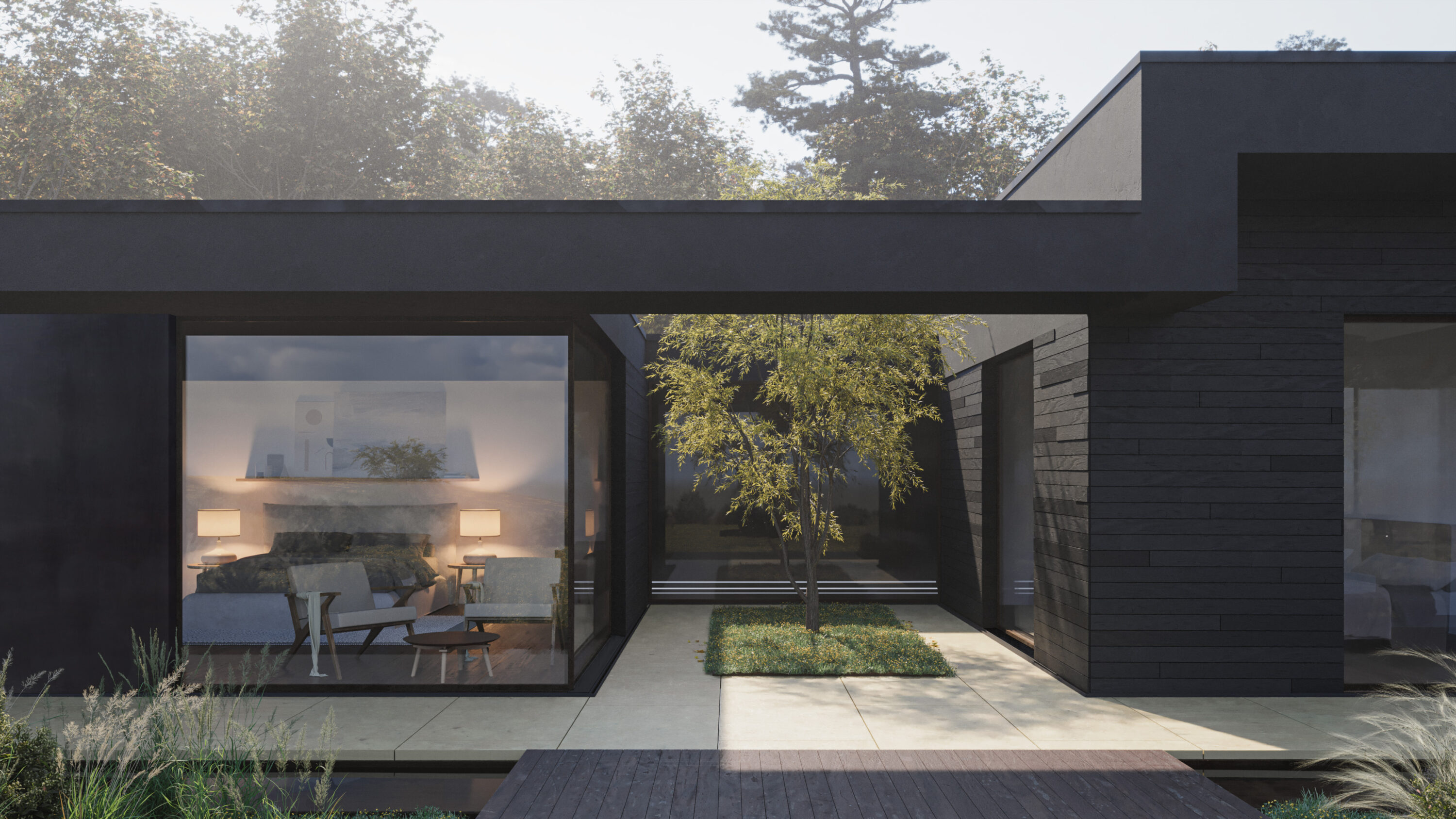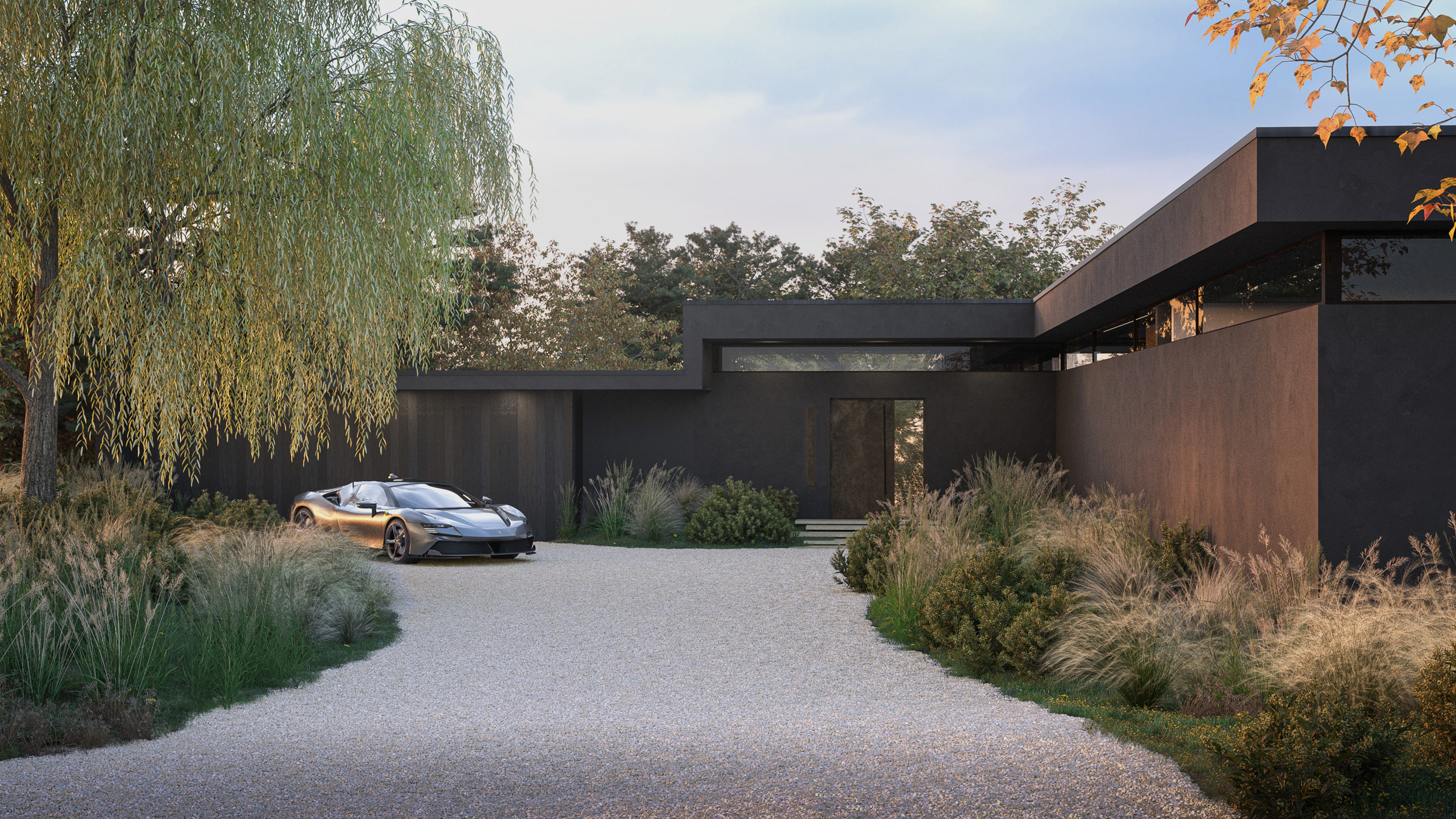 Kingbury House is a contemporary new home within an urban setting, providing a complimentary contrast to the surrounding period properties in a Berkshire town. The design combines indoor-outdoor living, landscaped gardens and quiet seclusion, and in replacing the previous house, the sustainable credentials will be significantly improved, with a highly insulated building fabric, passive ventilation and a ground source heat pump.