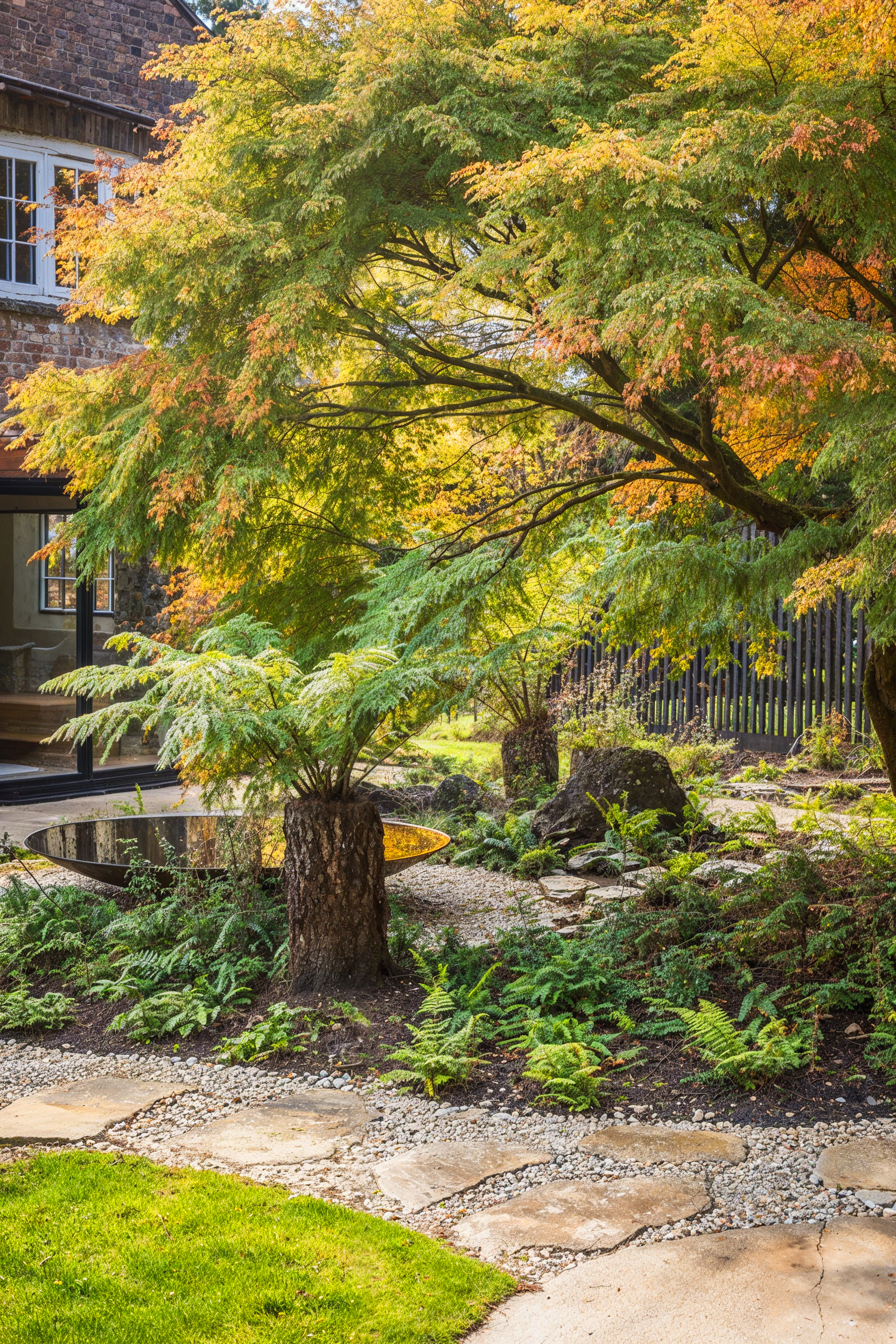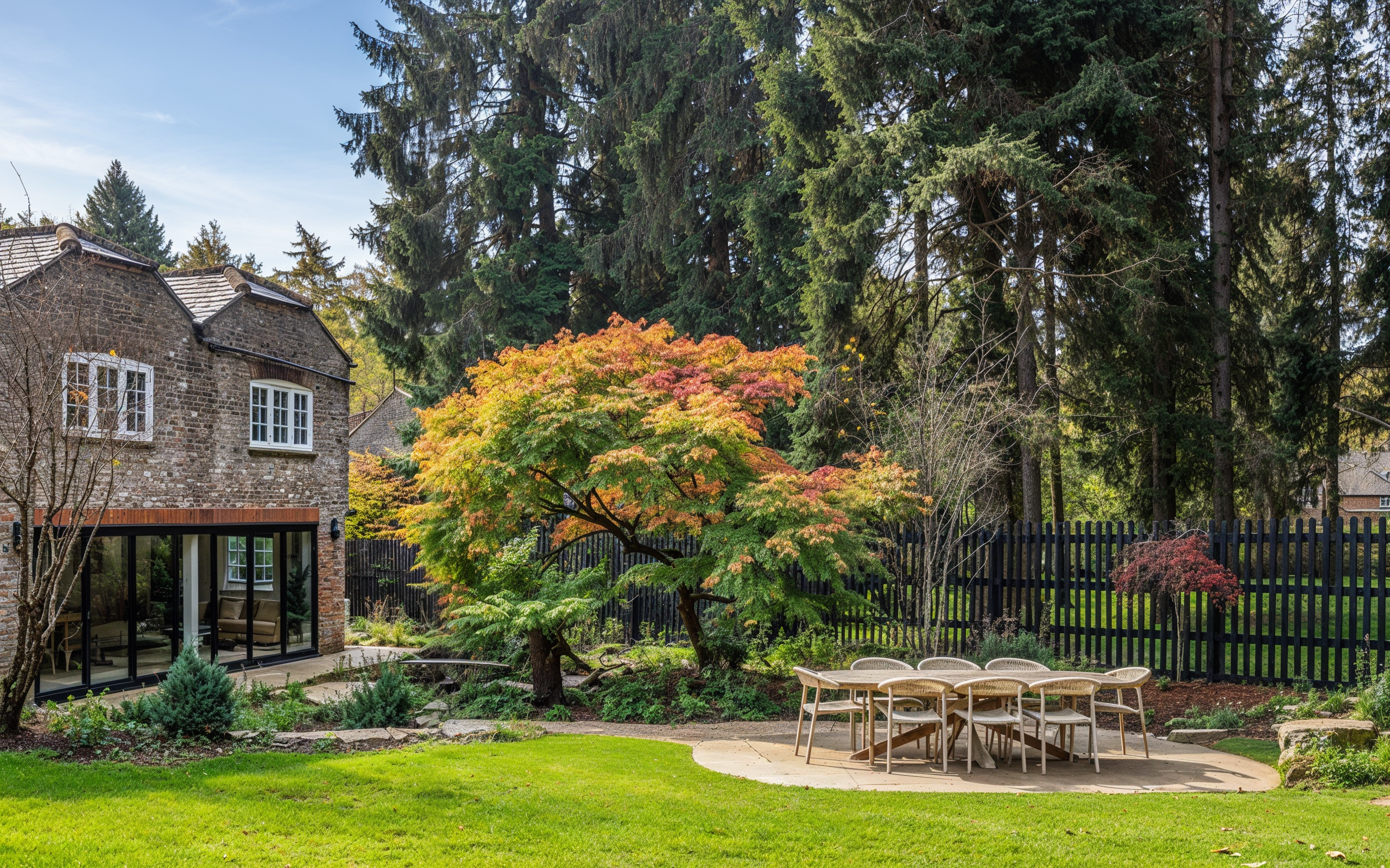 The garden at The Grove in Buckinghamshire is set within the wider woodland that lines the boundary of the property. The setting influences the new garden which blends the lines between the garden and the landscape beyond, harnessing the tranquil, peaceful atmosphere whilst providing areas to socialise, dine and relax.